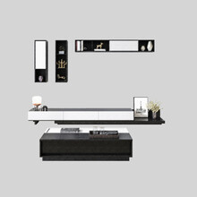 班奇盾 电视墙柜现代简约北欧电视柜茶几组合墙柜中小户型黑胡桃色伸缩电视机柜会议室 成套壁柜颜色需备注 整装