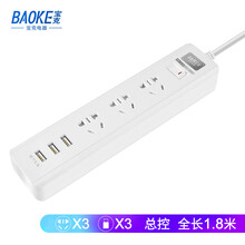 宝克(BAOKE)USB插座 插排/插线板/排插/接线板/拖线板 3USB接口+3组合孔位 总控全长3米 K613U-3K