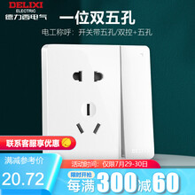 德力西(DELIXI)开关插座面板CD821无框大板白色10A一开五孔16a空调usb插座网络86型 斜五孔插座