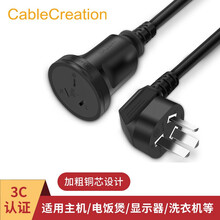 CABLE CREATION 电源延长线3插 16A空调热水器插座转换器大功率家用电源延长线 【16A电源延长线 弯头】白色 1米