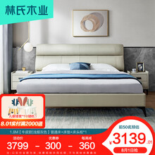 林氏木业轻奢真皮床软包主卧大床现代简约双人卧室
