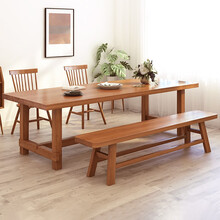 慕恭木语日式实木餐桌椅组合长条餐厅客厅大户型饭桌原木工作台8人10桌子 长凳:120*30*45