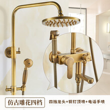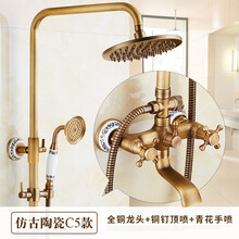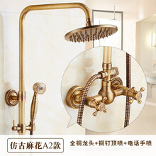 全铜仿古花洒套装欧式浴室增压淋雨沐浴花洒水龙头复古恒温淋浴器 麻花飞机花洒