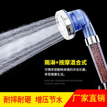 固微止水多功能三档可调负离子水疗淋浴花洒自动增压节水手持喷头套装 三档可调8CM(全PC蓝色)