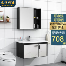 意洁利卫浴岩板浴室柜组合 太空铝洗脸盆柜卫生间洗手盆柜组合简约吊柜洗漱台防潮洗手台 60cm+陶瓷盆+镜柜