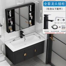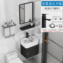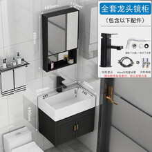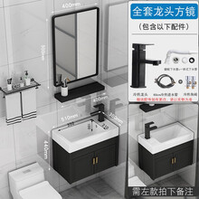 久勒(JIOOLER)超小户型浴室柜组合简约洗脸洗手盆迷你卫生间面盆防水窄长4030cm 黑71×40cm配下水龙头+储物镜柜
