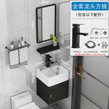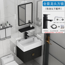 简约洗脸洗手盆迷你卫生间面盆防水窄长4030cm 黑71×40cm配下水龙头+储物镜柜