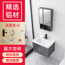 洗手间卫生间大小户型洗手盆洗脸盆柜悬挂阳台壁挂太空铝厕所洗漱台挂墙式 40*29盆柜盆柜+黑方龙头+40镜柜