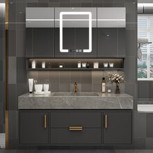 卫生间洗漱台 0.8米(主柜+智能镜柜)岩板一体盆