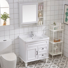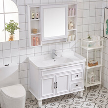 枚洁简约现代浴室柜组合落地式小户型厕所卫生间洗漱台一体陶瓷洗手池洗脸盆洗手盆面盆套装置物镜子柜 孔雀蓝色90cm落地款