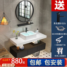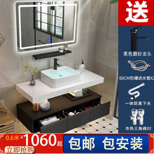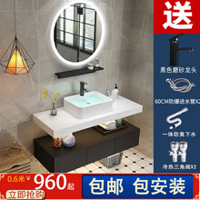 酒店款小户型简约现代大理石台面卫生间洗漱台洗手盆洗脸池 0.8米LED智能圆镜