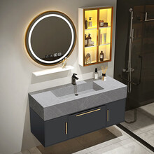 柜套装支持定制 80CM岩板台下盆【智能圆镜+单排边柜】 店长推荐