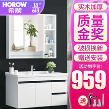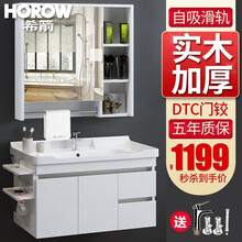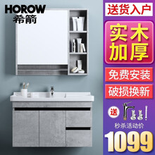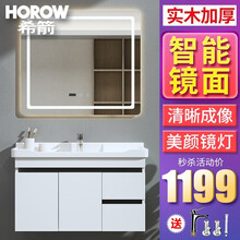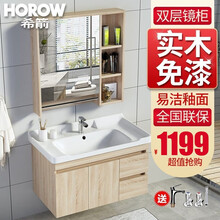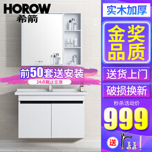 希箭HOROW 实木浴室柜组合洗脸台洗手台镜柜面盆洗漱台吊柜卫生间洗脸盆洗手盆柜卫浴组合套装 【实木柜+龙头下水+安装】凤凰白80cm