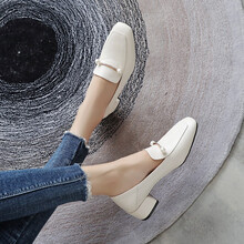 爵士迹尘2020新款单鞋女珍珠水钻小装饰穆勒鞋女大小码方头粗跟玛丽珍鞋女 黑色 33