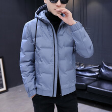 羽绒服男士冬季短款外套青年潮流韩版修身防寒衣男冬装大码加厚保暖帅气棉夹克 837雾霾蓝 XL