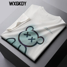 WXQKDY潮牌轻奢短袖T恤男 夏季新品男士个性小熊印花修身圆领半袖上衣男潮流青年