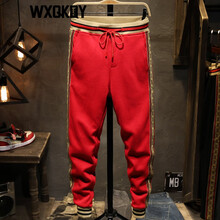 WXQKDY潮牌轻奢休闲裤男 夏季新品男士个性侧边印花修身束脚裤男潮流青年