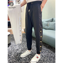 nES 潮牌夏季新款男士轻薄透气休闲裤男韩版修身个性侧边烫金束脚长裤男百搭印花运动休闲裤 白色 M