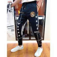 nES 潮牌夏季新款男士星星印花休闲长裤男潮流修身虎头印花束脚小脚裤男百搭