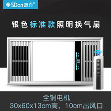 施丹集成吊顶换气扇带照明二合一led灯排气扇超薄静音厨房卫生间排风扇家用300×600 30x60【开关】标准款【蓝魅银+溫显】照明+换气
