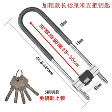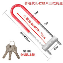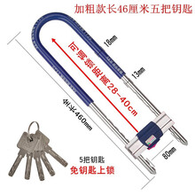 双开门插锁摩托车插锁防盗锁加长U型锁店商铺锁 中号【350mm】三把钥匙 颜色默认随机