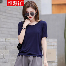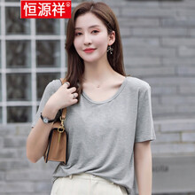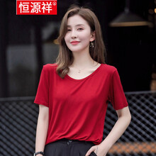 恒源祥品质女装 冰丝T恤女胖200斤冰丝莫代尔短袖恤女夏休闲大码简约领宽松色打底衫 白色 M