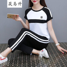 2020韩版运动服夏天时尚短袖九分裤两件套晟易升 黑色T08 2XL 125-135斤