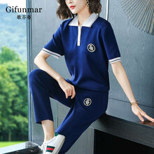 GILFUNMAR品牌冰丝翻领运动套装女时尚针织夏季短袖薄款洋气显瘦休闲两件套潮 浅粉色 M