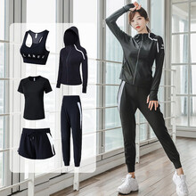 玉儿恋 瑜伽服女套装网红健身房运动套装女晨跑步服速干衣休闲二三五件套装 紫色短袖五件套(外套短袖长裤短裤文胸) M