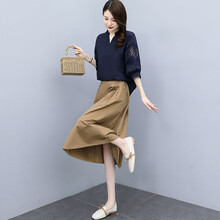 时尚显瘦款式上衣亚麻半身裙