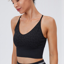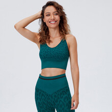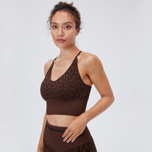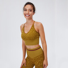 内衣 夏季薄款透气豹纹活力提花细肩带中长款健身瑜伽背心式胸罩 WXM127活力橙上衣 S(首页入会享折)