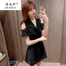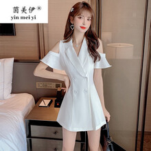 夏2021新款设计感露肩西装连衣裙+洋气两 黄色 S
