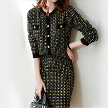 RXCV轻奢潮牌欧洲站2021年秋季新款套装裙女减龄洋气时尚韩版百搭气质收腰显瘦针织开衫短裙子 杏色 S(100斤左右)