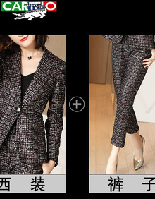 卡帝乐鳄鱼轻奢品牌小西装套装女2021年春秋西服套装女气质时尚职业套装韩版名媛 西装+子 S
