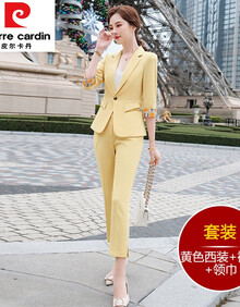 皮尔卡丹女装 半袖西装外套女单扣修身小西服职业休闲套装气质上班ol工作服秋款洋气好看西装 (单件)黑色西装+ S