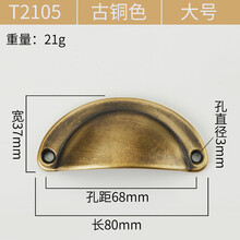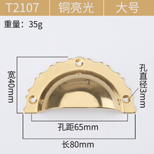 新中式仿古铜拉手纯铜老式半圆复古典橱柜斗柜柜抽屉贝壳拉手定制 T2105铜亮光