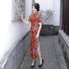 长款复古东北大花布修身走秀