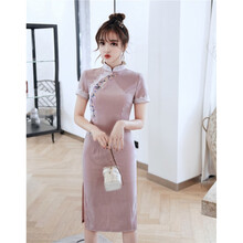 旗袍女2021新款春夏蕾丝花边棉麻刺绣少女旗袍连衣时尚修身中长款旗袍 浅 绿 S