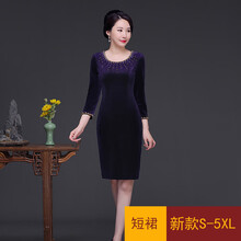 改良旗袍秋冬新款时尚优雅妈妈装圆领金丝绒旗袍中长款 686-短裙-枣红 M