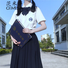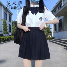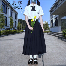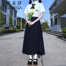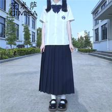 茨米萨 夏天女生JK裙子少女夏装2021新款初中高中学生日系长裙毕业班服连衣裙套装女装潮 白衣藏青长裙两配领结 M