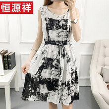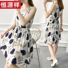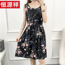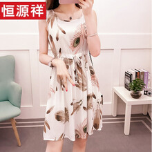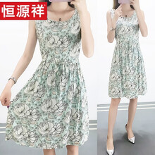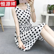 【特价捡漏】恒源祥《国货之光》品牌女装棉绸连衣裙女夏季新款小个子时尚外穿波点碎花人造棉无袖背心 杏色 马尾草2号 XL