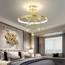上夏 卧室灯吊灯轻奢水晶简约现代北欧圆形温馨主卧室书房ins房间灯具 金色-40*39CM-26W-白光上夏 卧室灯吊灯轻奢水晶简约现代北欧圆形温馨主卧室书房ins房间灯具 金色-40*39CM-26W-白光