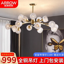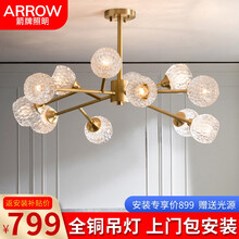 ARROW箭牌照明 北欧全铜水晶吊灯套餐2021新款网红ins轻奢灯具简约现代客厅灯卧室餐厅灯 质保三年电子卡箭牌品质,质保三年