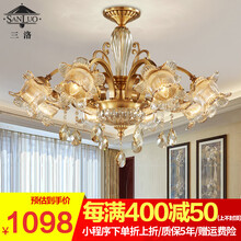 三洛 美式全铜水晶吊灯客厅灯欧式简约餐厅主卧室房间灯别墅大厅LED吸吊两用灯具 3头+含LED三色灯泡(吸吊两用款)+包安装8月大促狂欢购:每满400减50(上不封顶)VS新品1件8折,发京东快递,多数产品包安装,赠运费险,灯具质保5年,小程序下单折上折,详情联系客服!!!