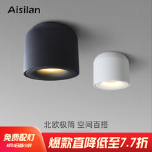 爱斯兰 LED明装筒灯简约客厅卧室背景墙吸顶式射灯北欧过道玄关天花免开孔灯具MTD128 黑色7W 自然光