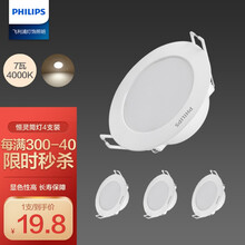 超市 飞利浦 PHILIPS 恒灵3.5W超薄led筒灯 7-8cm开孔 4000K中性光 【4支装】白色