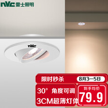 京东超市 雷士照明(NVC)筒灯LED精品射灯WHTD07-09天花客厅卧室背景墙嵌入式超薄射灯铝材7瓦哑黑暖白光开孔75mm【雷士品牌秒杀日】【0-24点限时抢2件8折!角度可调|3CM超薄灯体|40°光束角|高显色】【限时秒杀,点击抢购】