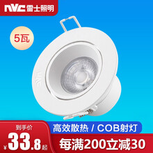 雷士照明LED射灯 防眩目嵌入式天花灯 节能高亮COB筒射灯 3W5w7瓦9瓦 小尺寸3.5瓦 白色 开孔5.5cm 可调角度 白光7月家装季,冰点促销,每满200减30!点击查看