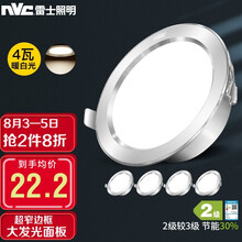 京东超市 雷士(NVC)LED筒灯超薄筒灯客厅吊顶天花灯过道嵌入式孔灯铝材牛眼灯 4W砂银 正白光6500K 5只套装【雷士品牌秒杀日】【0-24点限时抢2件8折!全铝材超薄超窄边框!高显色丨高光效|大发光面!】【限时秒杀,点击抢购】