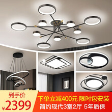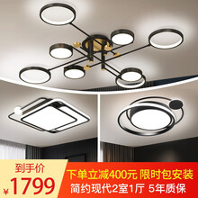晶致黑金美学灯【套餐包安装】客厅灯简约现代轻奢灯具吸顶灯北欧风大气大厅网红三室两厅全屋灯饰语音+遥控 套餐9:三室两厅无极+遥控【包安装...选黑金美学空间来晶致【享6期免息、限时包安装】【抢999立减100元优惠券与走廊灯、叠加满999立减100元、满1999立减300元、满2999立减500元】